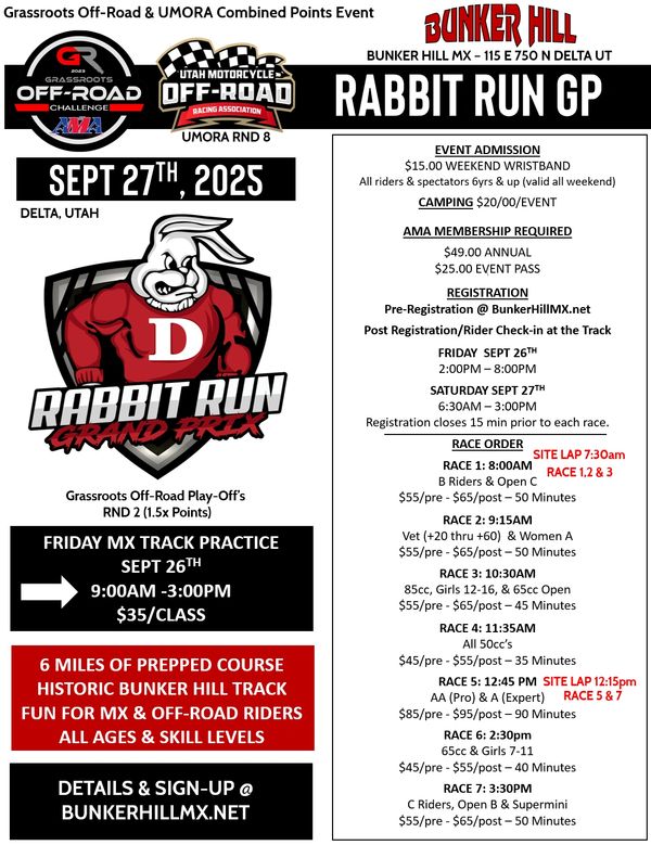 Friday: MX Track Practice 9:00am - 3:00pm (practice order available at the track Fri morning)